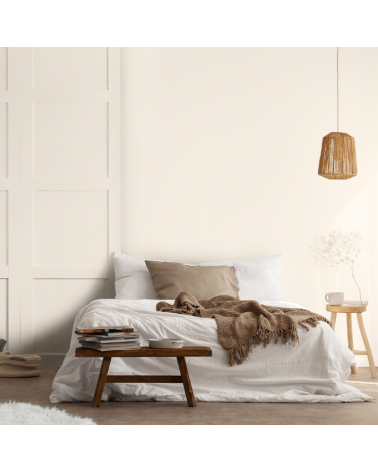 Lumineuse et intemporelle, la couleur Fleur d'oranger s'adapte à tous les styles et à toutes les ambiances. Pour une atmosphère chic et minimaliste, associez-la à des gris très clairs comme notre Gris Calcaire ou à la profondeur d'un gris subtil tel que Carbon. Pour un style naturel et bohème, elle est parfaite avec des couleurs terreuses et douces comme Bellecour pour une touche ocre ou Sarrasin et des matières naturelles comme le bois brut, le lin froissé et le rotin.